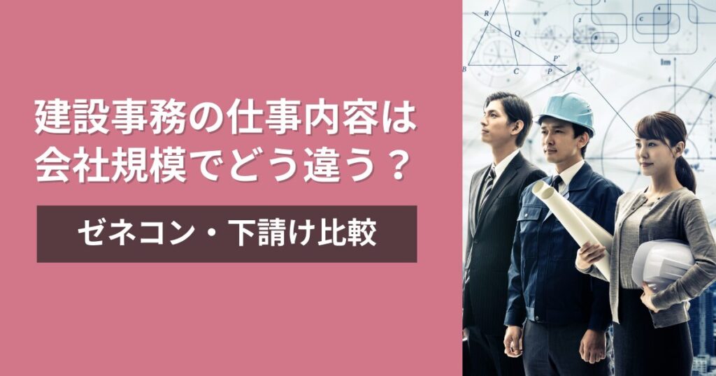 建設事務の仕事内容は会社規模でどう違う?ゼネコン・下請け比較